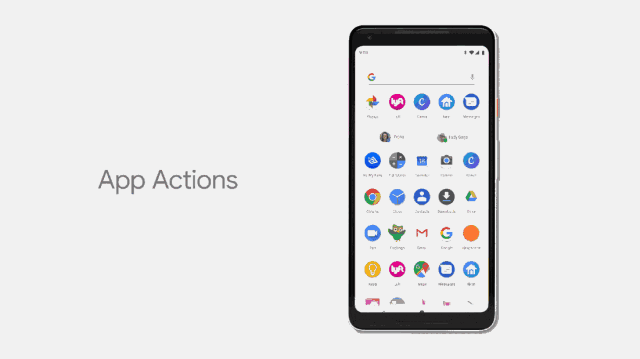 App Actions 是可以帮助用户快速获得所需的一种简单而有效的方法,其功能主要就是利用 AI 和机器学习预测用户想要进行的下一步动作。例如,系统会自动预测用户是否需要给某个人打电话,或者将要出门锻炼,这些预测的信息会在 Android P 的启动器顶部以气泡形式出现。