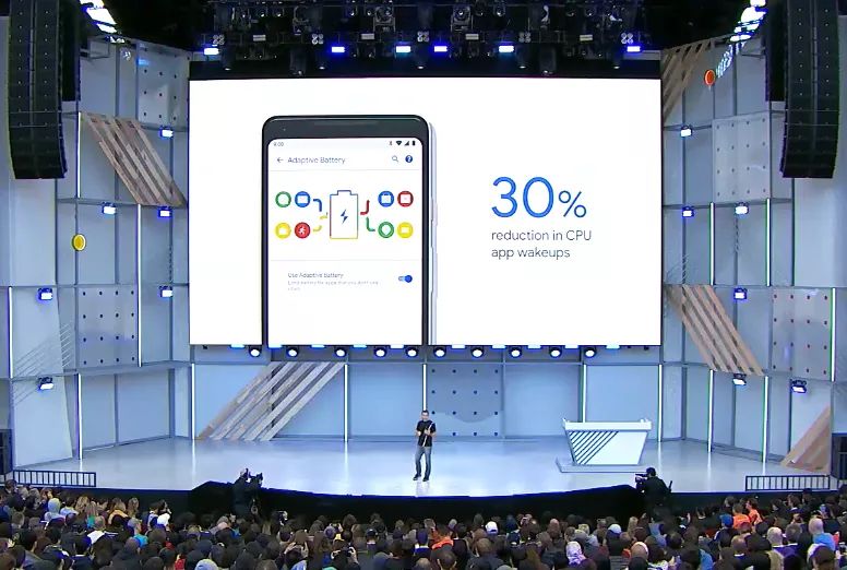在 Android P 中,谷歌加入了全新的省电功能:Adaptive Battery。在该功能下,应用程序不必要唤醒造成的 CPU 资源占用可以减少 30% ,更专注于用户最常用的应用和服务,最大限度、最充分地利用电池。