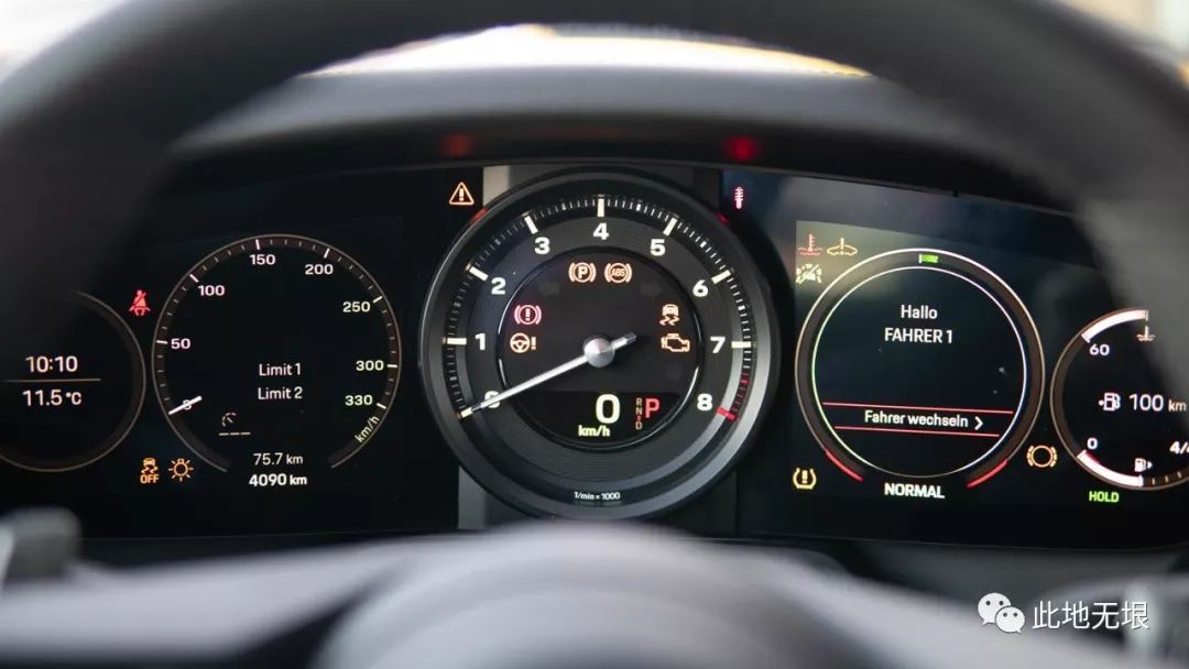 这个向经典致敬的“彩蛋”就在于垠哥手指的方向——仪表板。全新一代保时捷 911 依旧保留了5块表的元素,但除了中间的转速表为机械式仪表之外,两侧均为7英寸的液晶屏。但是,再细节之处就在于转速表的指针,指针的样式设计与最初的保时捷 911 十分相似。