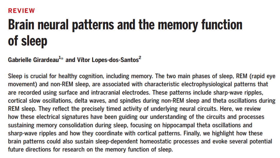 尽管迄今为止,REM 睡眠与引发「θ震荡」的变化之间的确切联系仍不清楚。但有研究表明,若采用外部手段破坏「θ震荡」,确实会对相关语境记忆的巩固过程造成损害。