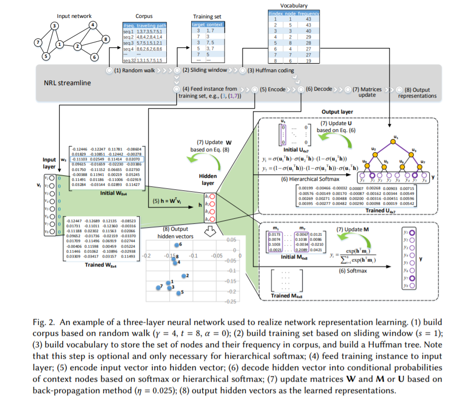 为了方便参考,我们在表1中列出了整个论文中使用的数学符号。本综述的其余部分结构如下。在第2节中,我们描述了使用自动编码器方法生成节点嵌入的网络表示学习的基本步骤。在第3节中,我们概述了统一的NRL三阶段参考框架,并讨论了在每个阶段使用的代表性方法、模型和优化技术。在第四章中,我们回顾了传统NRL、分布式NRL、多分布式NRL、动态NRL和基于该参考框架的知识图表示学习的最新进展,并讨论了几个有待解决的问题。在第5节中,我们总结了我们的综述。