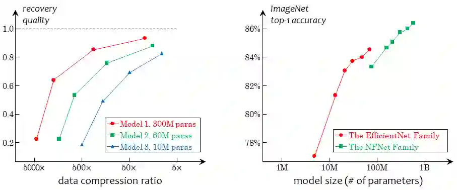 从另一个角度看,图像空间比文本空间要大得多,空间的结构也要复杂得多。这就意味着,如果希望在空间中采样大量样本,并且用这些数据来表征整个空间的分布,采样的图像数据就要比采样的文本数据大许多个数量级。顺带一提,这也是为什么自然语言预训练模型比视觉预训练模型用得更好的本质原因——我们在后面还会提到这一点。