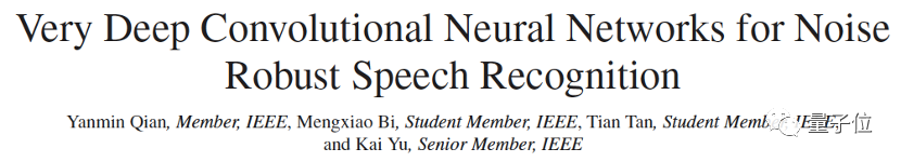 钱彦旻团队首先在2016年的研究证明了极深卷积神经网络(VDCNN),具有优越的自主抗噪鲁棒性。