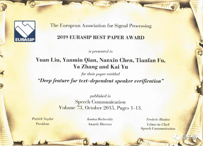 值得注意的是,这项研究在2019年获得了语音领域权威期刊Speech Communication的最优论文奖。
