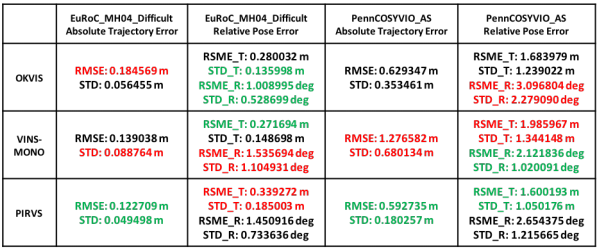 我们在多个公共的视觉-惯性数据集上对提出的系统进行了全面的评估。实验结果显示,我们的系统在个人电脑上和最先进的视觉-惯性算法在精度上旗鼓相当,而在PIRVS硬件上,我们的算法更高效。