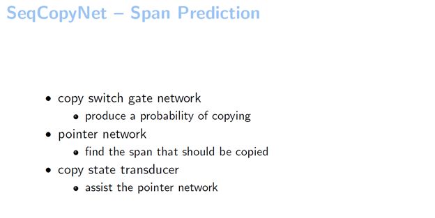 第三,我们设计了一个copy state transducer。它的主要作用是帮助pointer network来进行一个片断的选择。