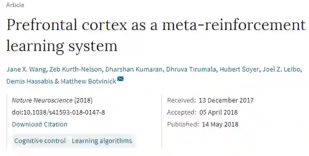 这项工作由Jane X. Wang,Zeb Kurth-Nelson,Dharshan Kumaran,Druruva Tirumala,Hubert Soyer,Joel Z. Leibo,Demis Hassabis和Matthew Botvinick合作完成。
