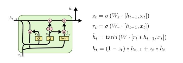 一种稍微变化大一点的LSTM变体是Gated Recurrent Unit, 或者GRU, 由 Cho, et al. (2014).提出来的,它组合了忘记和输入门到一个“update gate”。它也合并了细胞状态和隐含层状态。和做了一些其他的改变。他的这个模型比标准的LSTM模型更加的简单,也慢慢的流行起来了。