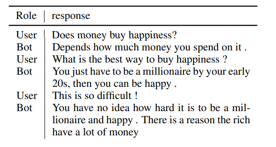 类似于 GPT-2,DialoGPT 是以自回归语言模型的形式构建的,其模型架构使用了多层 transformer。但不同于 GPT-2,DialoGPT 的训练使用了从 Reddit 讨论链中提取出的大规模对话对/会话。作者猜想这应该能让 DialoGPT 学到对话流中更细粒度的 P(Target, Source) 的联合分布。他们在实践中也观察到了这一现象:DialoGPT 生成的句子丰富多样而且包含特定于源提示的信息,类似于 GPT-2 为连续文本生成的结果。