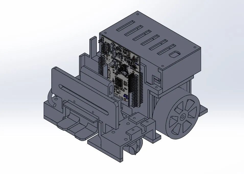 我们设计并使用 PLA 材料 3D 打印了车辆底盘。前轮为脚轮。