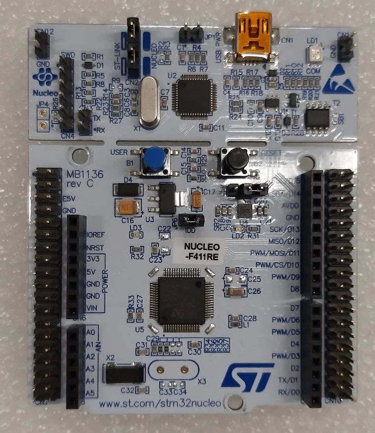 我们首先使用 NUCLEO-F411RE 作为开发板。我们选择使用 Dynamixel 配置电机。