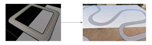 后来,我们发现这是由于我们大多使用直线轨道训练模型。为解决这种数据不均衡的问题,我们在场景中添加了各种形状的曲线。