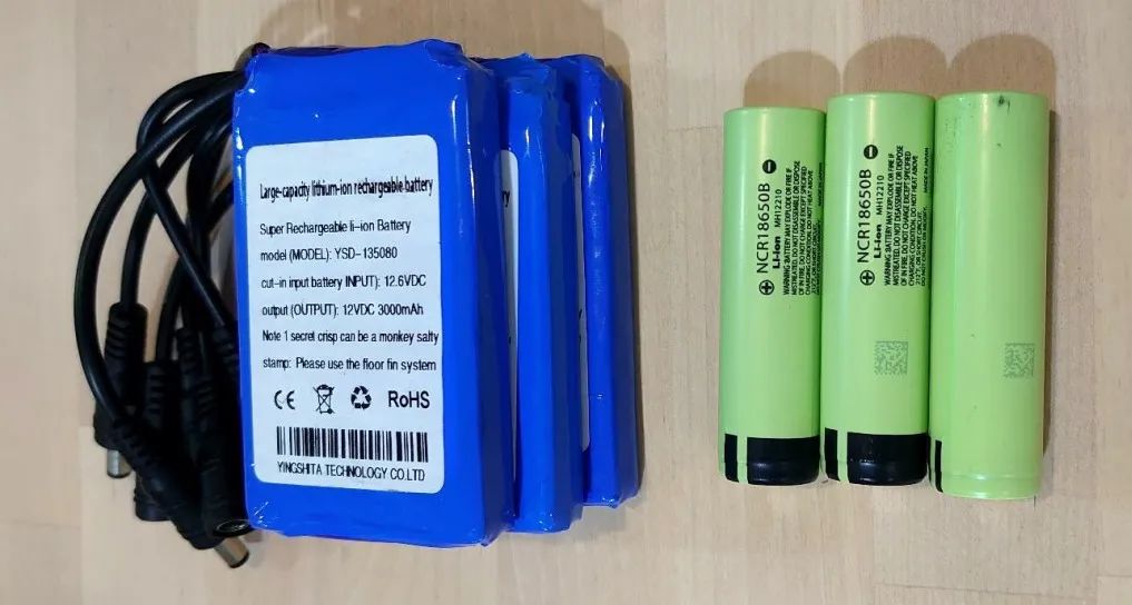 △ 3000mAh 锂离子电池(左)与 18650 锂离子电池(右)
