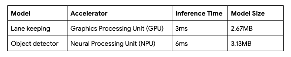 使用设备端的前置摄像头,我们可以实时保持车道、进行定位和目标检测。不仅如此,示例中的 Pixel 4 还支持通过 USB-C 接口的扩展,如控制电机或其他电子元件,车辆可在检测到其他车辆时停车,或者以正确的交互方式实现转向。