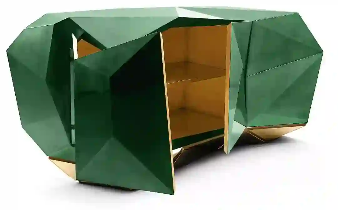 王府中環M&O 设计特展上的钻石形祖母绿色餐具柜