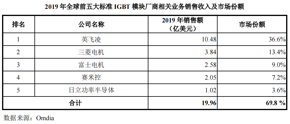 这一领域,比亚迪半导体耕耘了17年,自2005年创建IGBT团队、三年后建立6英寸晶圆生产线、再到2009年成功自研中国第一枚IGBT芯片IGBT1.0,比亚迪半导体站在了车规级IGBT越来越重要的位置,据Omdia数据,在新能源乘用车电机驱动控制器这个细分领域,比亚迪半导体2019年以IGBT模块19%的市占率排名第二,仅次于国际知名大厂英飞凌。