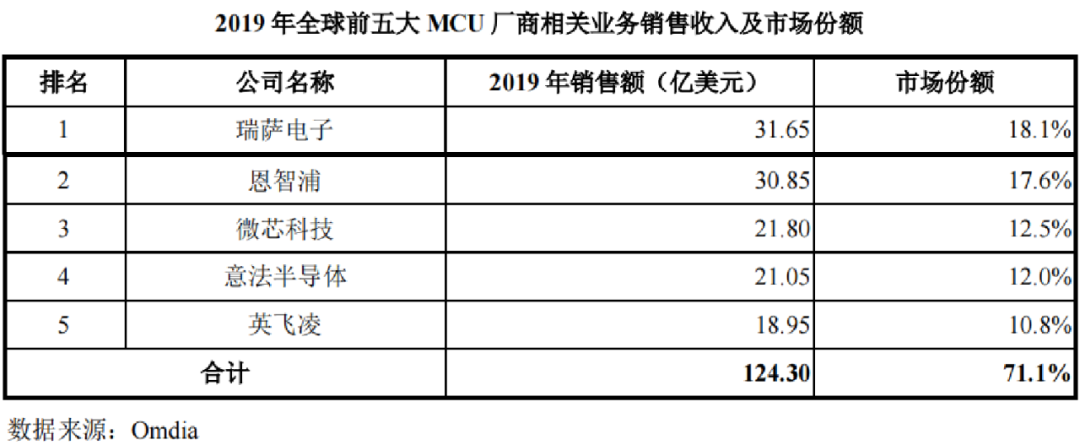 MCU(微控制单元)则是车上卡脖子更严重的地方。Omdia数据显示,2019年全球MCU市场规模为175亿美元,仅中国MCU市场规模就达53亿美元,占比超3成。然而中高端MCU市场中,前五大MCU厂商就占据了70%以上的份额,前十大MCU厂商无一家境内企业。
