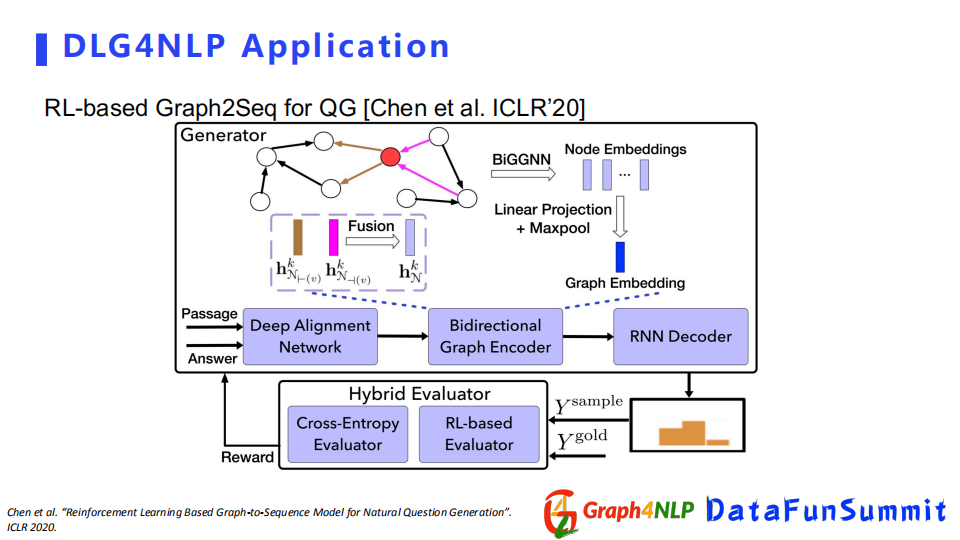 在ICLR220的这篇文章中,它是利用Graph2Seq的结构去解决生成问题,把输入表示成一个图结构,用BiGGNN去学习节点表征,再配上RNN decoder做最后的问题生成。