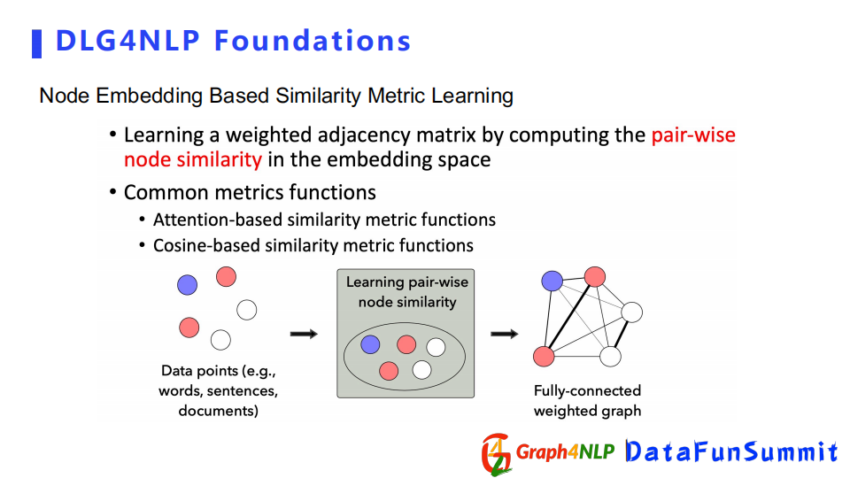 Node Embedding Based方法依靠两个节点的表征向量(embedding)。先计算两个节点embedding的相似度,然后把相似度作为加权的邻接矩阵里面的值。特征向量计算相似度的方式也分两种,一个是attention based,一个是cosine based。