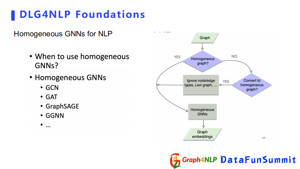 Homogeneous Graph的神经网络比较简单,构建来源有两种,一种是本身图结构就是homogeneous,第二种是通过转换操作,把non-homogeneous graph转化成一个homogeneous graph。