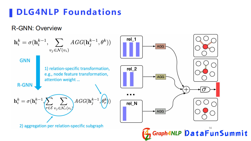 第一种方法是对每一个关系学一个卷积核,相比于传统的GNN,R-GGN有一个参数θ,对每个type都会学一个θ,每一个关系都会得到节点表征,然后把得到的节点表征做一个加和。