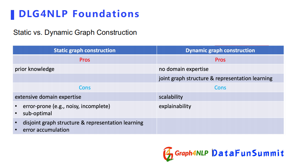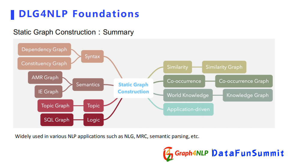 总结以上例子,静态图构建是需要额外的领域信息来增强句子本身的信息组成的图结构。常用的信息有句法信息、语义信息、主题逻辑信息、co-occurrence信息,甚至基于应用的信息。所以根据不同的领域信息,可以构造出不同的静态图结构。