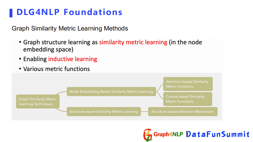 动态图构建中最重要的一个步骤是相似矩阵学习,其核心是计算任意两个节点特征向量相似度。首先需要设置一个相似的kernel去定义这两个embedding的相似度。两种典型的做法:一个是Node Embedding Based方法,第二个是Structure-aware方法,下面分别介绍这两种方法。