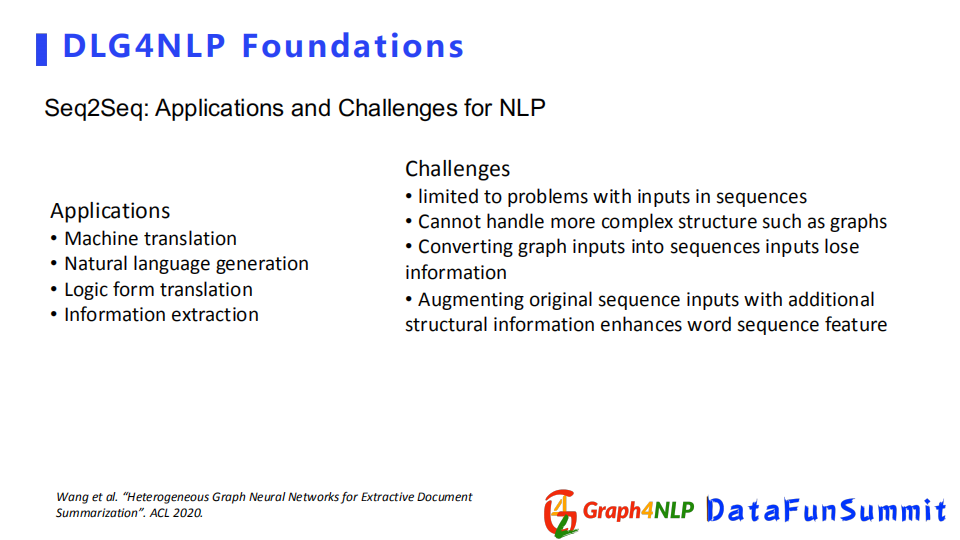 在经典的NLP任务里面,seq2seq的架构相对比较流行,比如自然语言翻译这种实际问题,但是这种结构只能处理序列转换,无法解决图结构,所以为了把图结构引入整个NLP任务,需要采用Graph2Seq的结构。