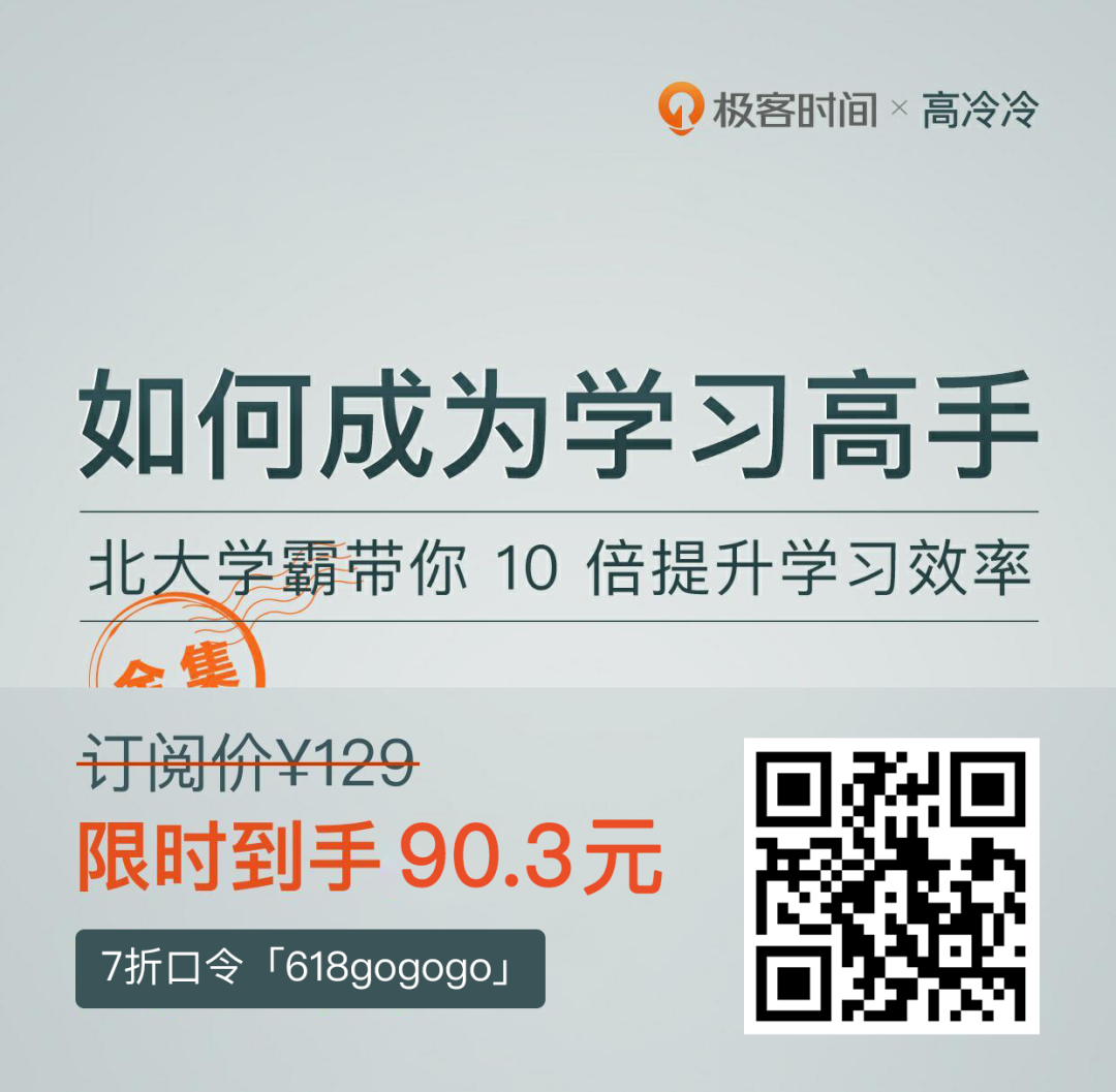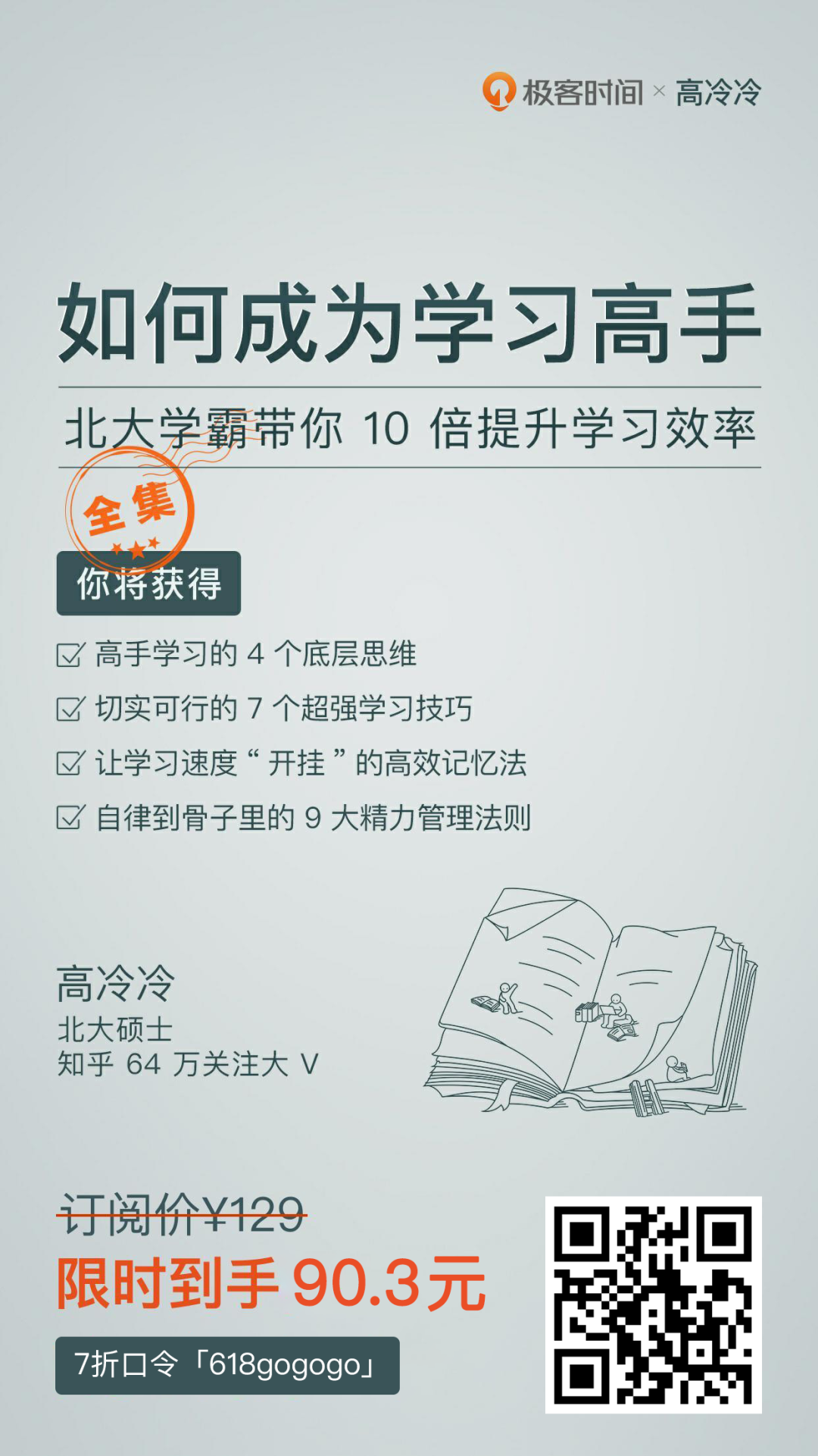 这些内容出自极客时间的专栏《如何成为学习高手》,作者高冷冷,哈工大化学本科,北大中文系硕士,知乎 64W 关注大 V 。整个专栏我花了 6 个多小时看完,不得不说,不愧是理跨文的北大学霸,没点技巧还真不行。