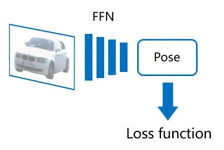 基于 PnP 的方法也需要前馈网络去预测 2D-3D 关联点集。相比于直接位姿预测,这一深度学习结合传统几何视觉算法的模型有非常好的可解释性,其泛化性能较为稳定,但在以往的工作中模型的训练方法存在缺陷。很多方法通过构建代理损失函数,去监督 X 这一中间结果,这对于位姿而言不是最优的目标。例如,已知物体形状的前提下,可以预先选取出物体的 3D 关键点,然后训练网络去找出对应的 2D 投影点位置。这也意味着代理损失只能学习 X 中的部分变量,因此不够灵活。如果我们不知道训练集中物体的形状,需要从零开始学习 X 中的全部内容该怎么办?