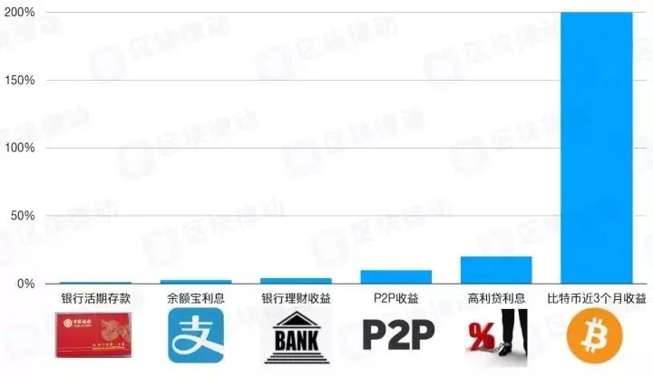 从 3 月份开始张超看到了比特币上涨的机会,如果他在 3 月份把买房的首付款 250000 块钱拿出来买下 10 个比特币,那么他现在的数字资产价值将达到 840000 元,这一收益远超 1.5% 的央行活期存款基准利率,远超蚂蚁金服余额宝 2.5% 的年化利率,远超银行理财产品 4-7% 的年化收益率,远超 P2P 10-15% 的年化收益率,远超高利贷 20-40% 的收益率。