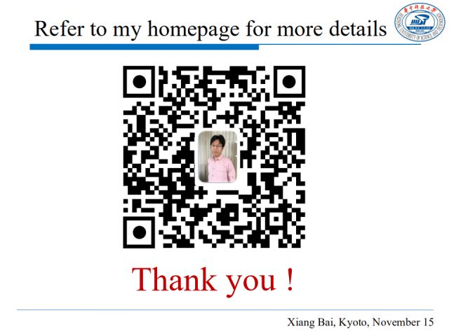 白翔,华中科技大学电信学院教授,先后于华中大获得学士、硕士、博士学位。他的主要研究领域为计算机视觉与模式识别、深度学习应用技术。尤其在形状的匹配与检索、相似性度量与融合、场景OCR取得了一系列重要研究成果,入选2014、2015、2016年Elsevier中国高被引学者。他的研究工作曾获微软学者,首届国家自然科学基金优秀青年基金的资助。他已在相关领域一流国际期刊或会议如PAMI、IJCV、CVPR、ICCV、ECCV、NIPS、ICML、AAAI、IJCAI上发表论文40余篇。任国际期刊Pattern Recognition, Pattern Recognition Letters, Neurocomputing, Frontier of Computer Science编委,VALSE指导委员,曾任VALSE在线委员会(VOOC)主席, VALSE 2016大会主席, 是VALSE在线活动(VALSE Webinar)主要发起人之一。