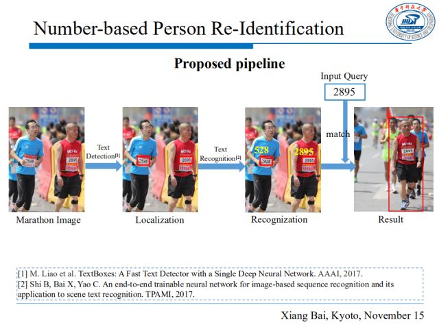 在马拉松比赛中,由于人员庞大、时间持续性长、场景复杂、服装相似等特性,使用行人重识别或者人脸识别的方法来跟踪参赛者是非常困难的,考虑到每一位选手有一个独特的编号,我们试图从场景文本检测的角度入手,根据编号进行行人的定位与跟踪。