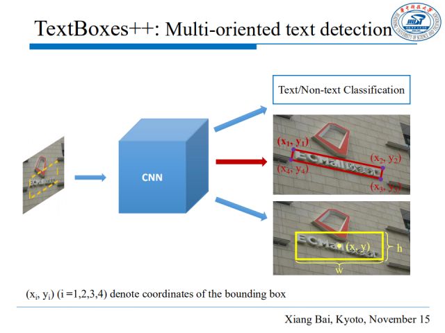 而现实图片中的文本往往不是水平的,也就是说,文本的边界框是多边形而不总是矩形的,因此我们添加了一个分支来回归多边形坐标,进一步优化TextBoxes以适用于多方向文本。