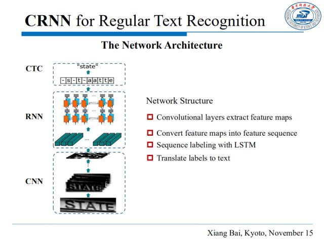 而近来循环神经网络大放异彩,它可以将文本识别看作一个序列标签问题,并能够直接输出标签序列。因此,第二种思路从序列层面入手,将文本看作一个字符序列,通过设计序列特征提取器,结合循环神经网络(RNN)和CTC模型(Connectionist temporal classification),将文本序列作为一个整体进行识别。