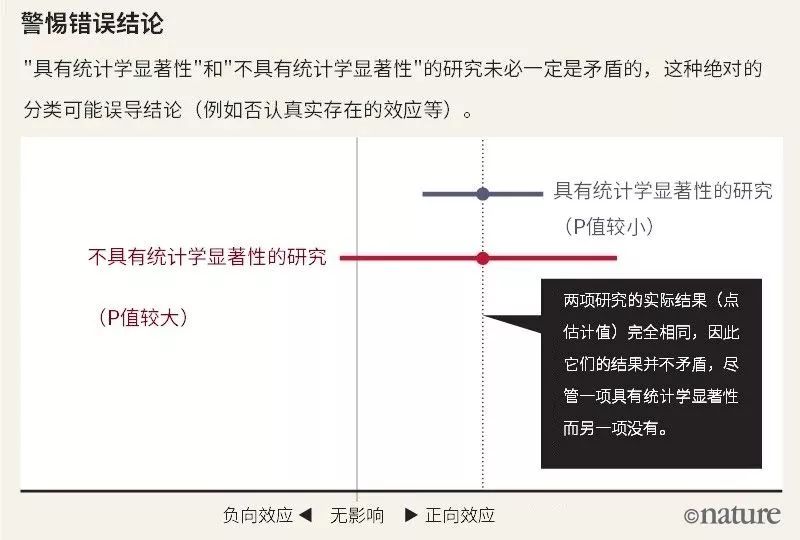 首先要声明我们反对的是什么:我们不能仅仅因为P值大于某个阈值(通常为0.05),或因为置信区间涵盖了0,而得出“无差异”或“无关联”的结论。我们也不能仅仅因为一项研究结果具有统计学显著性而另一项没有,便判定两项研究的结果存在冲突。 这些误解不仅会浪费研究资源,有时甚至会误导决策。