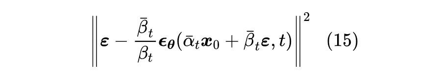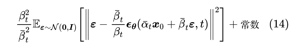 再次省掉常数和损失函数的权重,我们得到 DDPM 最终所用的损失函数: