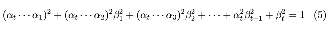 恒成立之下,我们可以得到式(4)的各项系数平方和依旧为 1,即: