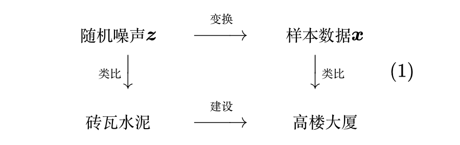 是高楼大厦,所以生成模型就是一支用原材料建设高楼大厦的施工队。