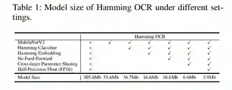 最近,Hamming OCR提出了Hamming Embedding和LSH局部敏感哈希分类算法。它能在保留模型能力的同时,大幅度削减场景文本识别中所需模型的大小。>>加入极市CV技术交流群,走在计算机视觉的最前沿