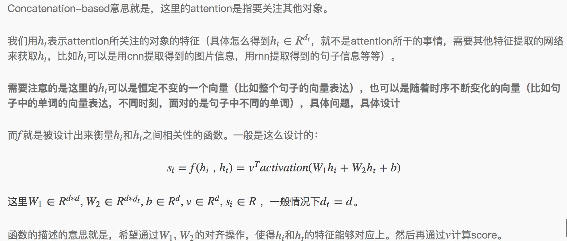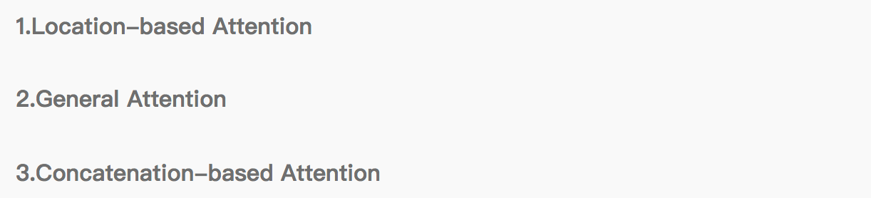 其中General Attention并不常见,(可能笔者读的paper不够多,目前还没有遇到过)因此在这里不做介绍。接下来详细介绍下Location-based Attention和Concatenation-based Attention的设计。