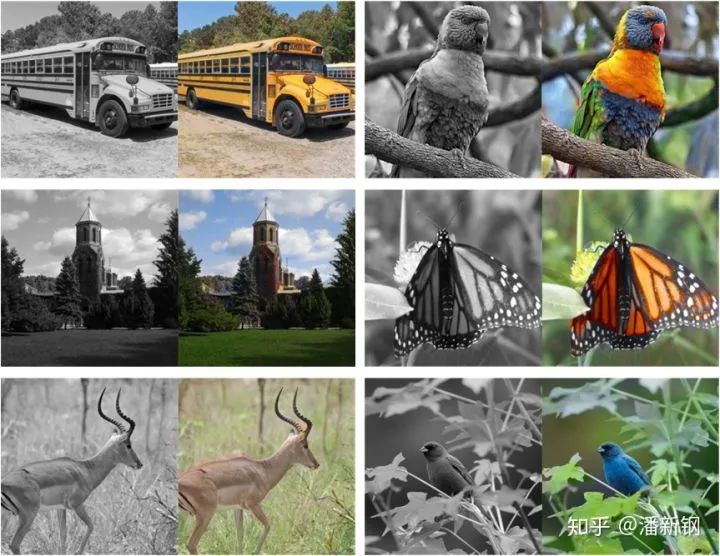 给定一张灰度图像,如何利用预训练好的GAN恢复它的颜色呢?一个自然的想法是在GAN的图像空间寻找一张灰度化后 与目标图片一致的图片,由于GAN倾向于输出自然的图片,因此找到的这张图会有自然的颜色。动画示意如下: