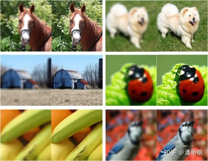 我们称上述方法为深度生成式先验deep generative prior (DGP),并运用到多种图像复原任务中,文章开头的动画展示了复原过程。这里展示更多结果:(注:这些是在ImageNet validation集上的结果,GAN在预训练时并没见过这些图片。)