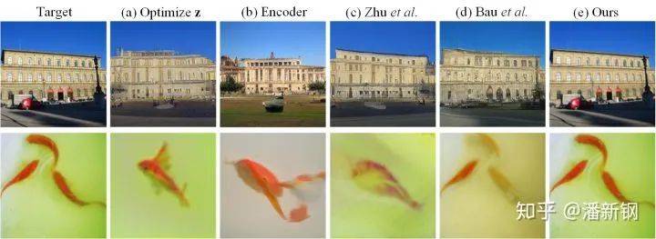 为图片距离度量例如MSE loss。然而在实践中,仅仅通过优化隐向量z 难以准确重建ImageNet这样的复杂真实图片。例如,以下(a)(b)(c)(d)为以往GAN inversion方法的重建结果: