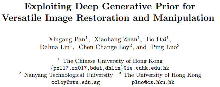 [1] Pan, Xingang, et al. "Exploiting Deep Generative Prior for Versatile Image Restoration and Manipulation." ECCV2020.