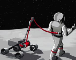 另一项提案则是生物机器人(Biobot)。生物机器人在跟随宇航员途中,通过延伸的脐带与宇航员相连,负责运送宇航员的生命维持系统和消耗品。尽管在不利环境中将个人生存交给一架机器人看来很可能令人不安,但是这架机器人却能让宇航员在返回基地前多撑些日子。宇航员甚至可以利用生物机器人来运送装备,并与地球上的人进行交流。