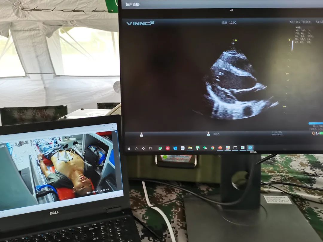 训练中,医疗队受命前接一名胸部受伤、血压下降、可疑核化沾染的伤员。转运途中,便携式超声机器人快速实现部署,医疗队成员远程遥控救护车内的机器人,为隔离状态下的伤员实施心脏超声检查,确诊为“创伤性心包积液”,需紧急实施心包穿刺。伤员转至手术车后,该中心心血管病医学部陈韵岱主任利用混合现实技术于北京的远程会诊中心指导医疗队成员实施了双向可视、精致入微的心包穿刺手术。解放军总医院第六医学中心白国刚主任、尹令名政委在中心后方全程参演,强调要深入复盘相关技术在前后对接、实际运用等方面存在的薄弱环节,加快推动该技术的转化与应用。