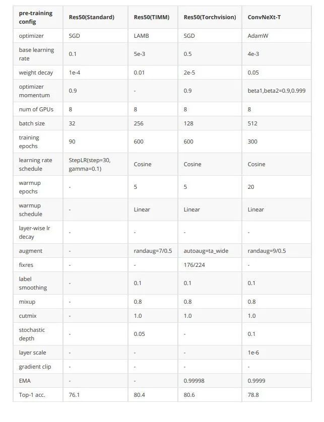 考虑到跟Swin Transformer的公平对比,本文的训练策略没有完全follow前面的工作,但仍然可以将ResNet50从76.1提升到78.8。