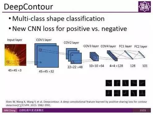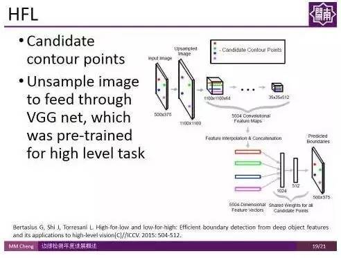 ICCV 2015的工作High-for-Low (HFL)也用CNN对可能的候选轮廓点进行判断。由于使用了经过高层语义信息训练得到的VGG Net,在一定程度上用到了高层语义信息,因此取得了不错的结果。