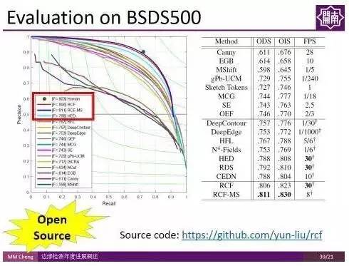 该方法操作简单,且不明显增加计算时间,虽然代码量少,但在BSDS500数据集上的结果甚至超过人类标注者的平均表现水平,而且在Titan X上能够达到实时检测速度(30fps)。且,这部分代码是开源的,可通过访问如下网址获得: https://github.com/yun-liu/rcf。